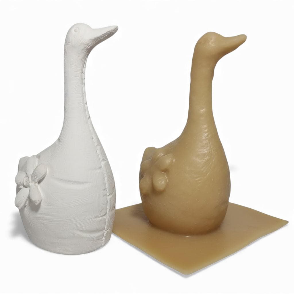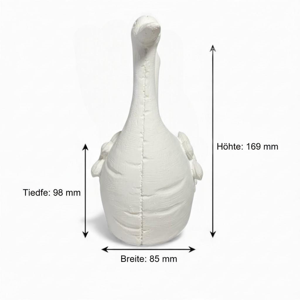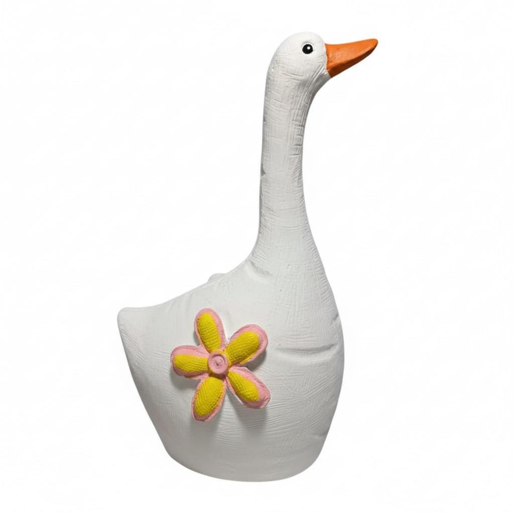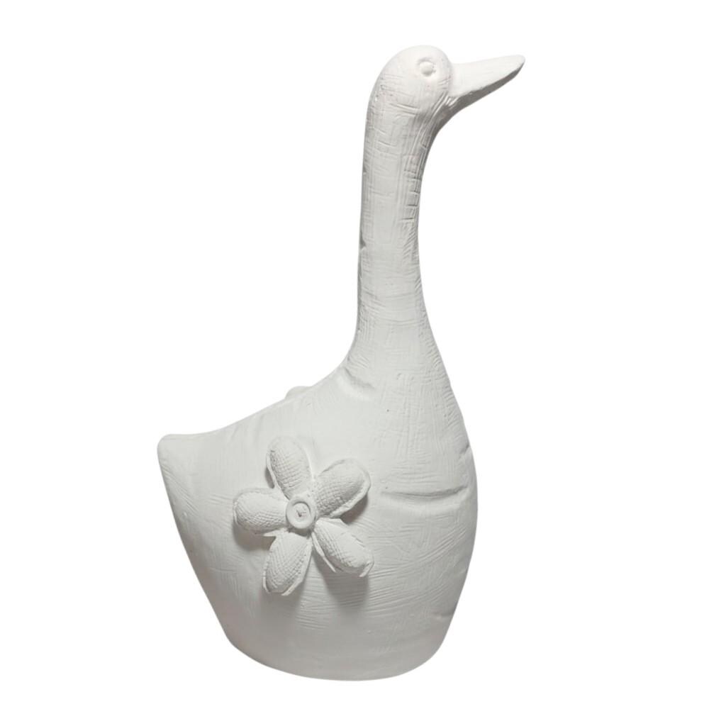 Handgefertigte Latex-Vollform zum Gießen einer stehenden Gans mit Blumenmotiv. Wiederverwendbare Form für Beton, Gips und Keramikgießmasse. Ideal für Garten- und Dekofiguren.