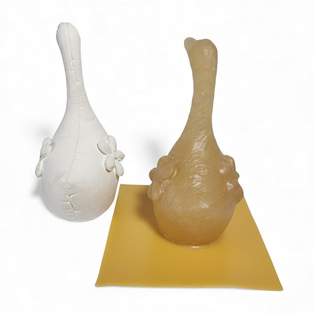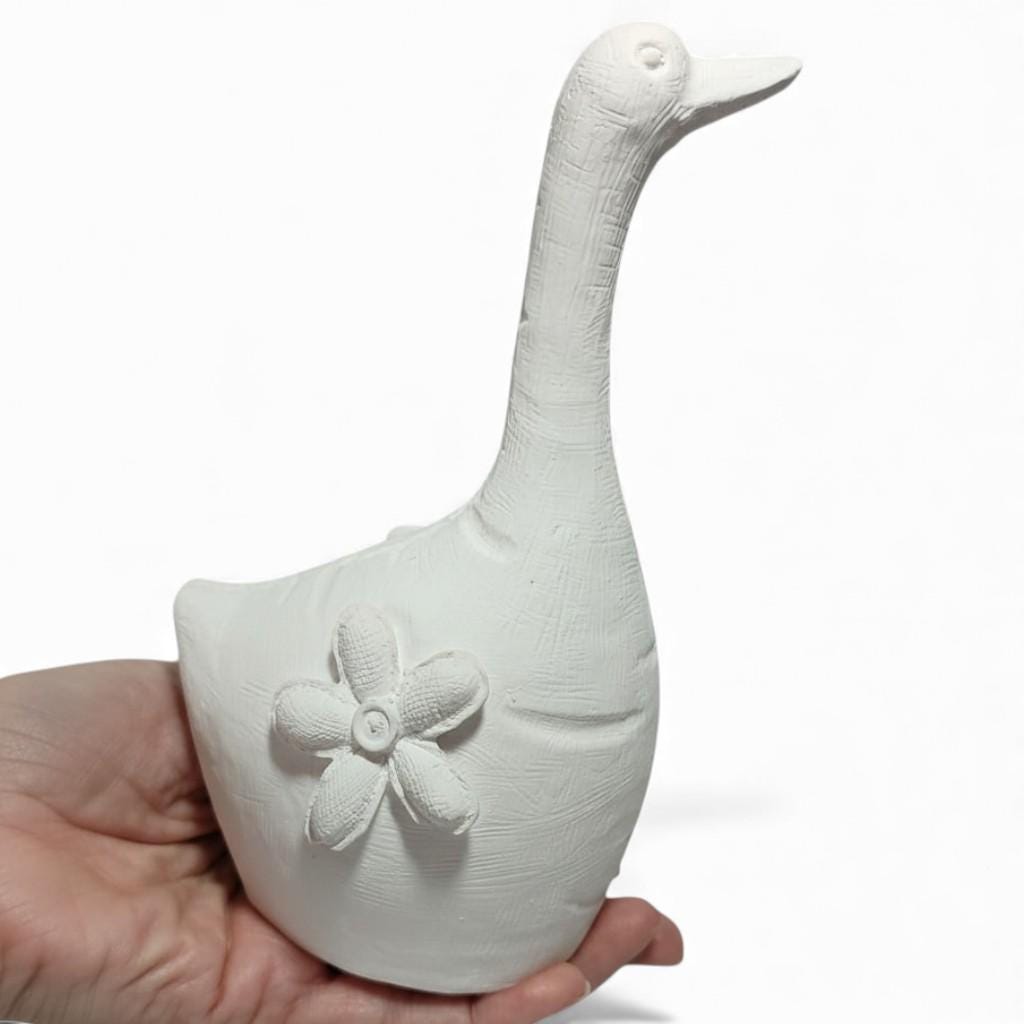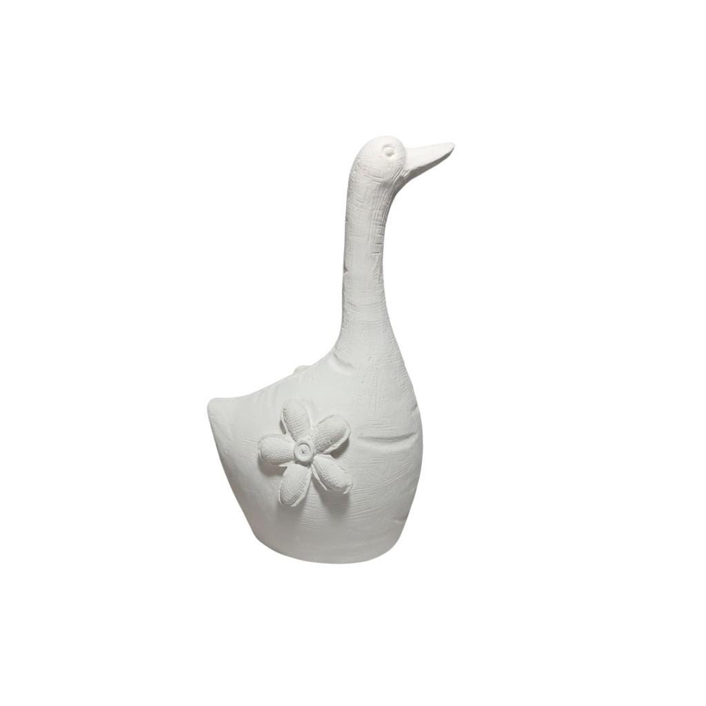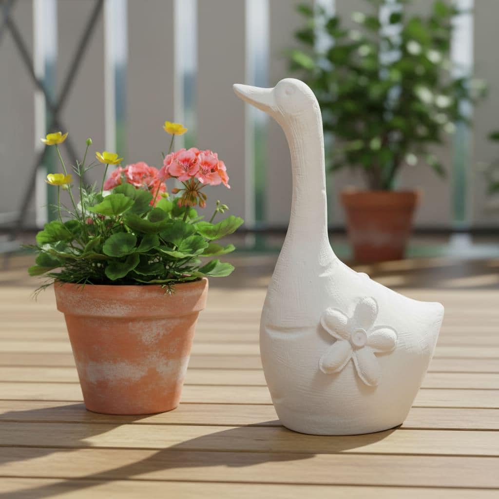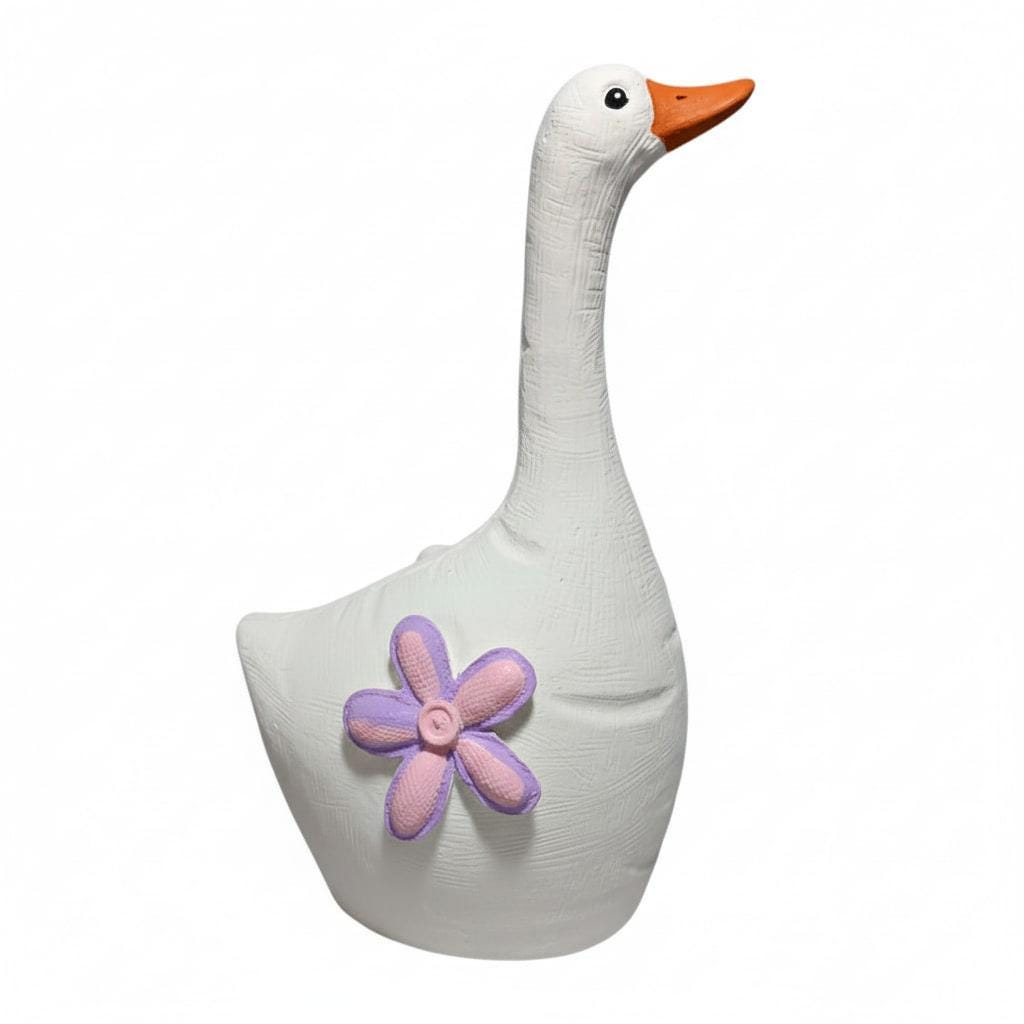 Handgefertigte Latex-Vollform zum Gießen einer stehenden Gans mit Blumenmotiv. Wiederverwendbare Form für Beton, Gips und Keramikgießmasse. Ideal für Garten- und Dekofiguren.