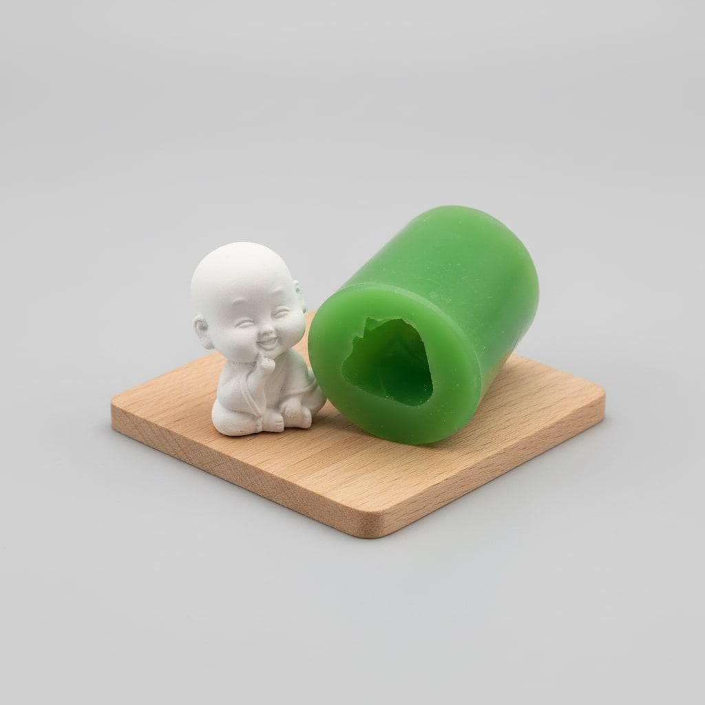 This handcrafted silicone mold creates a small, cheerful Buddha – ideal for wax, soap, resin, or various casting compounds. The mold is flexible, sturdy, and cleanly brings out the figure's fine details.