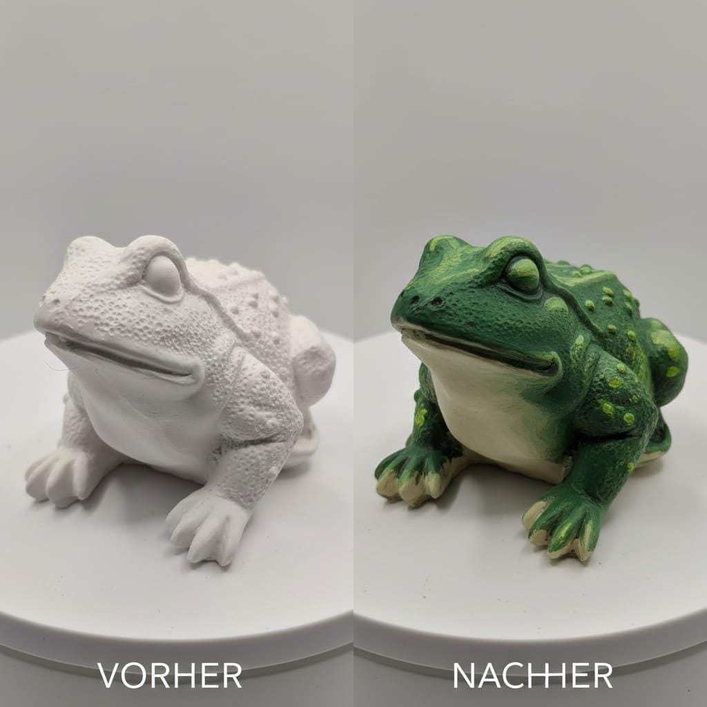 Diese handgefertigte Latexform Frosch ist eine flexible 3D-Gießform zum Selbergießen einer kleinen Froschfigur. Die Form wird in mehreren Schichten aus Naturkautschuk-Latex aufgebaut und bildet feine Details sauber ab. Sie eignet sich für Beton, Raysin, Keraflott und Weißzement.