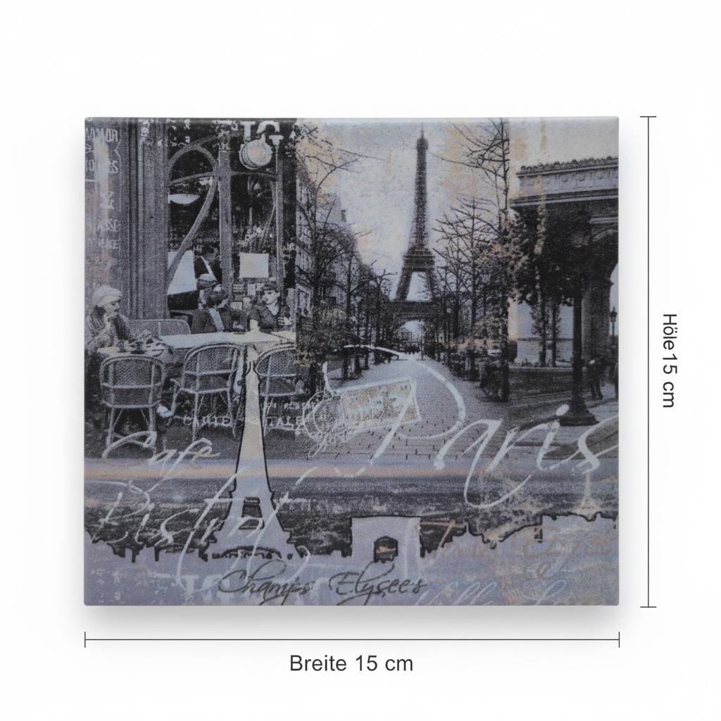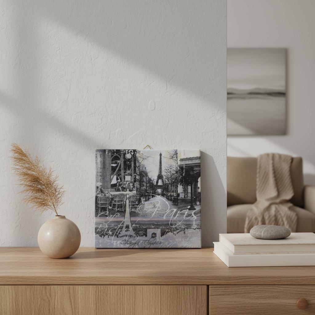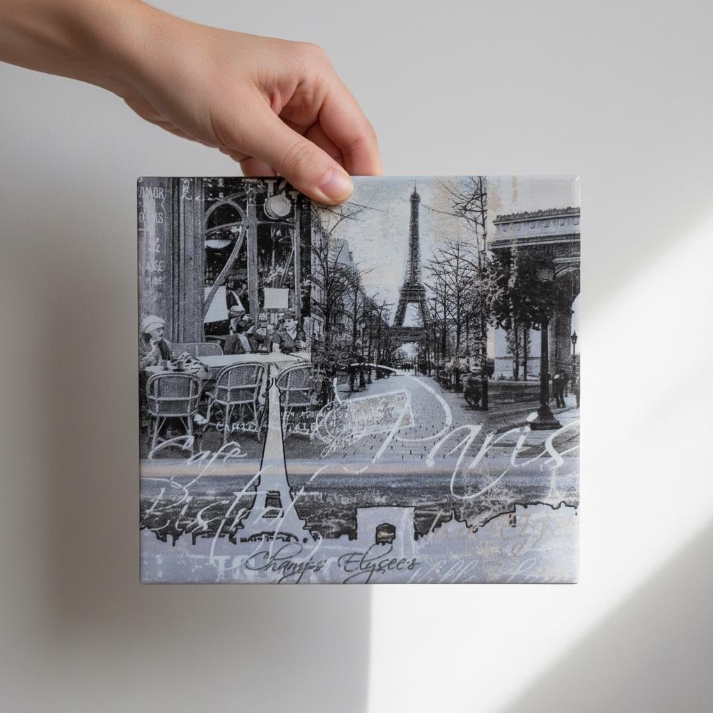 Die Fliese wirkt wie ein nostalgischer Stadtmoment und setzt einen dezenten, eleganten Akzent – ideal für Wohnzimmer, Flur, Büro oder als kleines Geschenk für Paris-Fans.