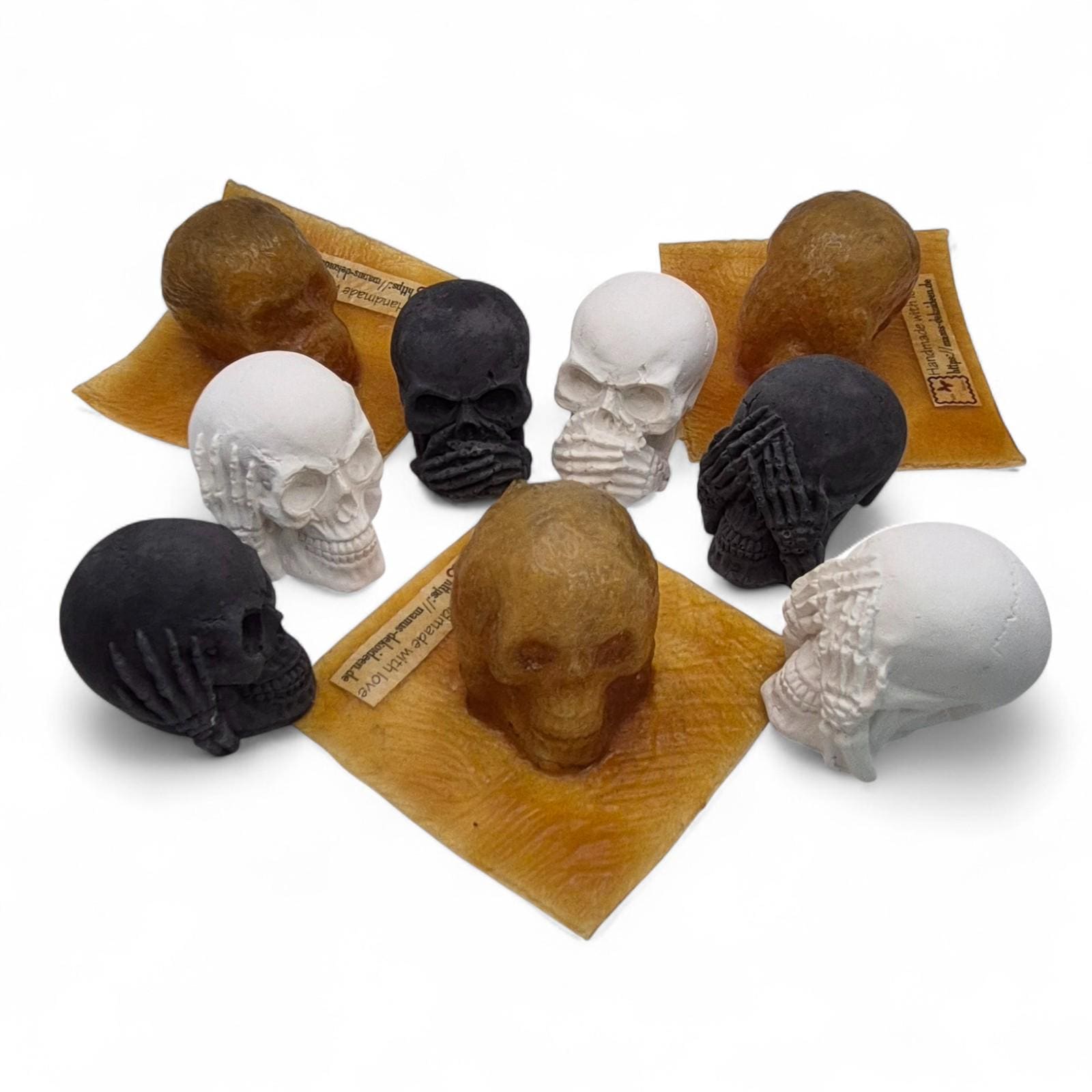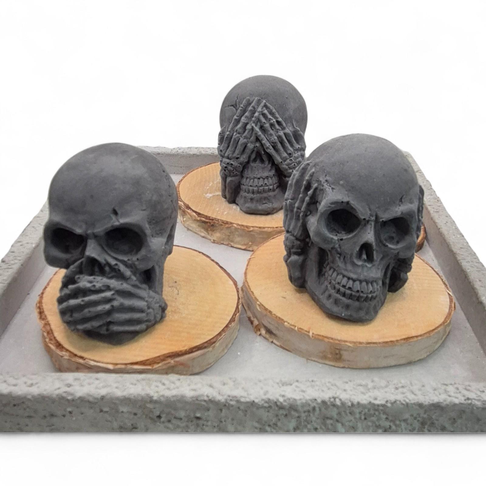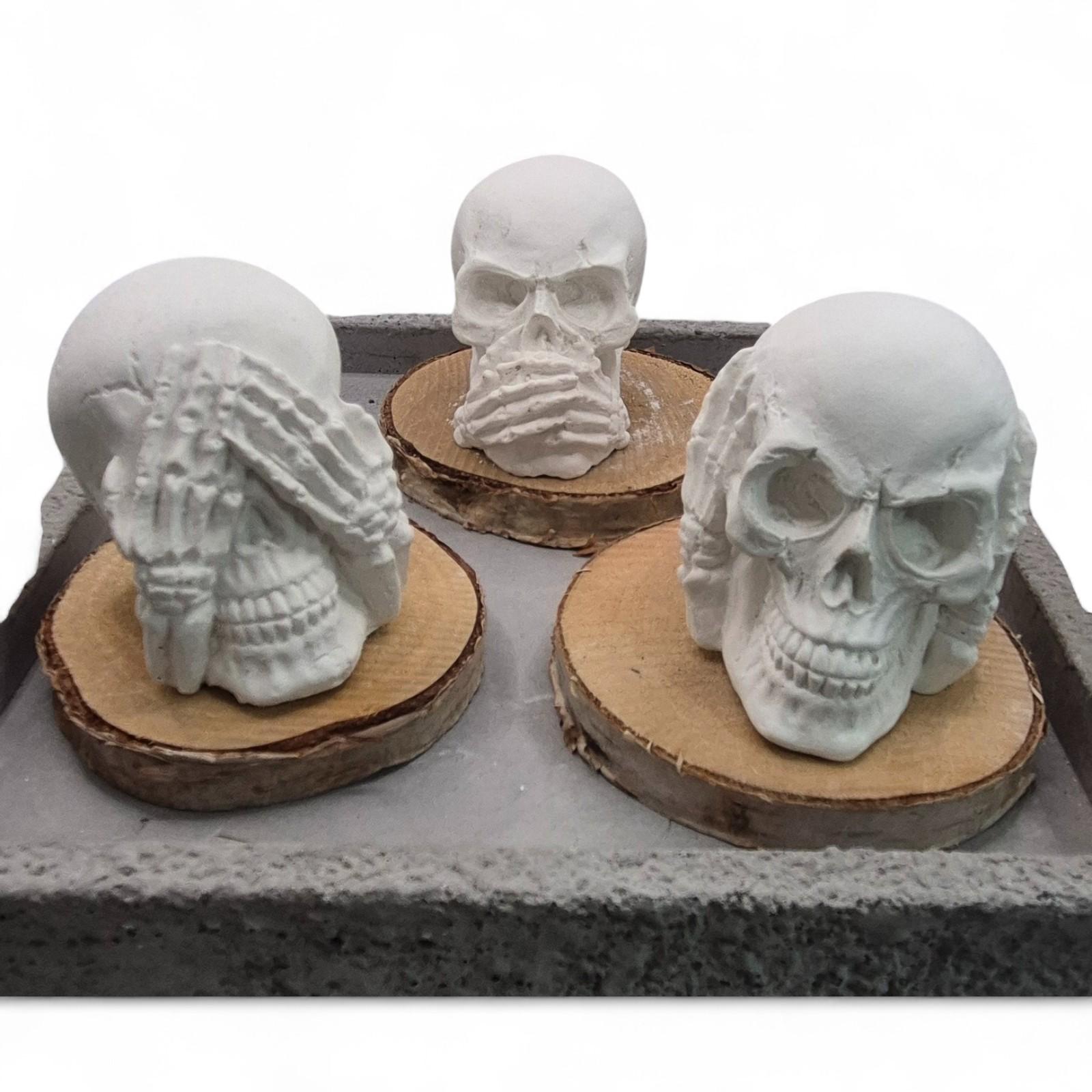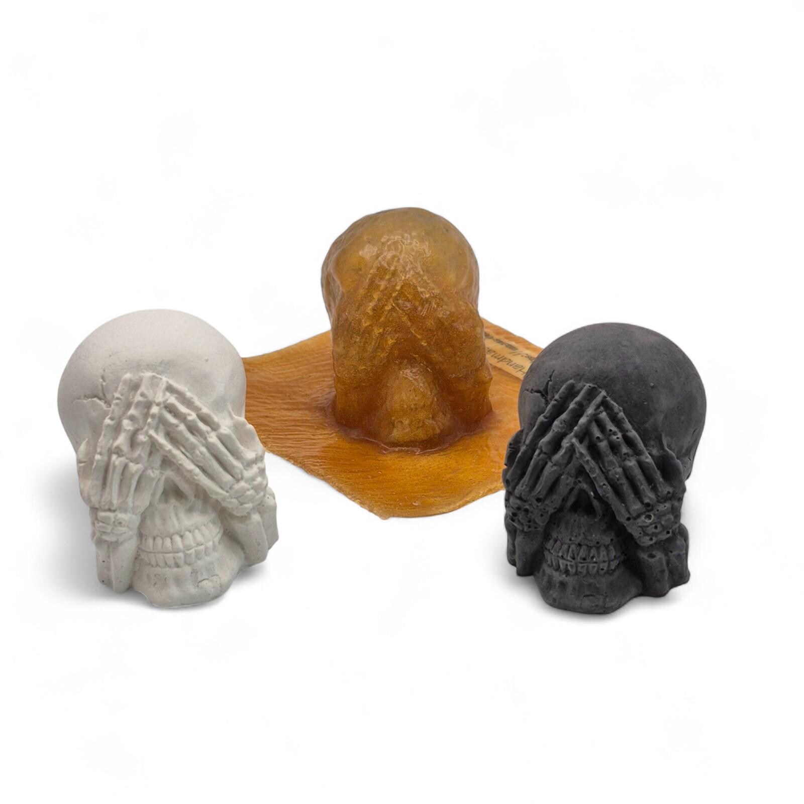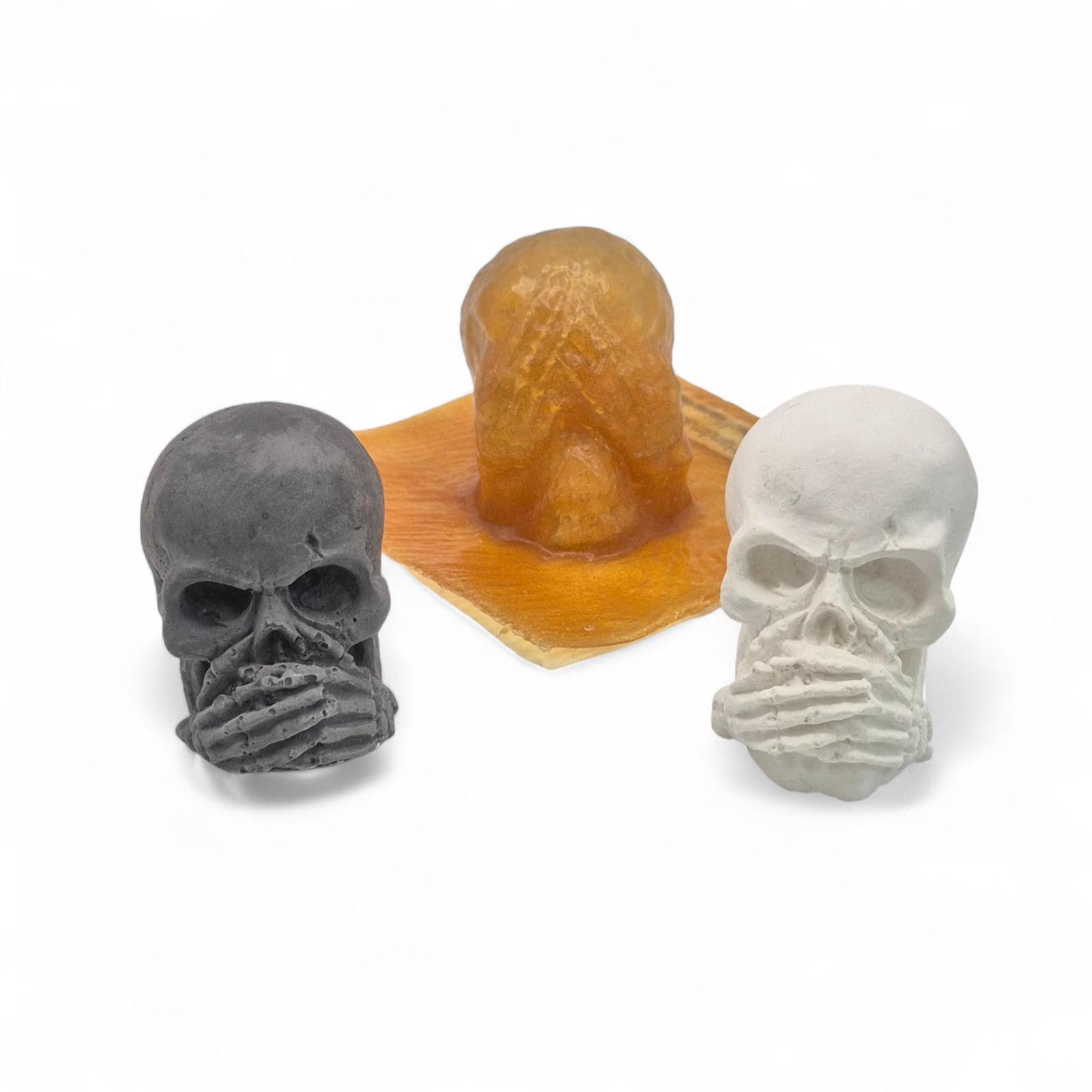 Three mystical skulls – inspired by the well-known "see no evil, hear no evil, speak no evil" motto. With this high-quality 3D latex mold, you can easily cast your own spooky skulls and create a unique Halloween or fantasy decoration. Whether as a table decoration, grave candle ornament, or mysterious collectible – these figures are a real eye-catcher and a sure-fire way to marvel.
