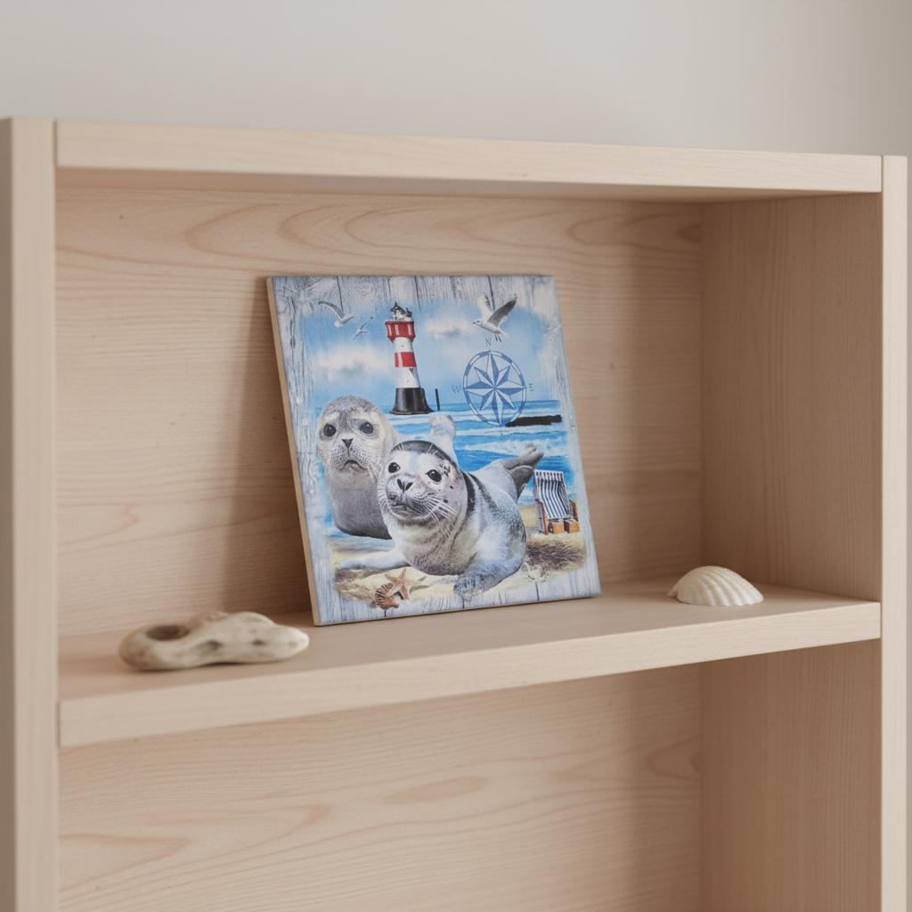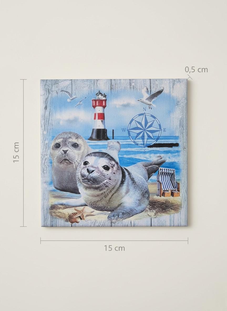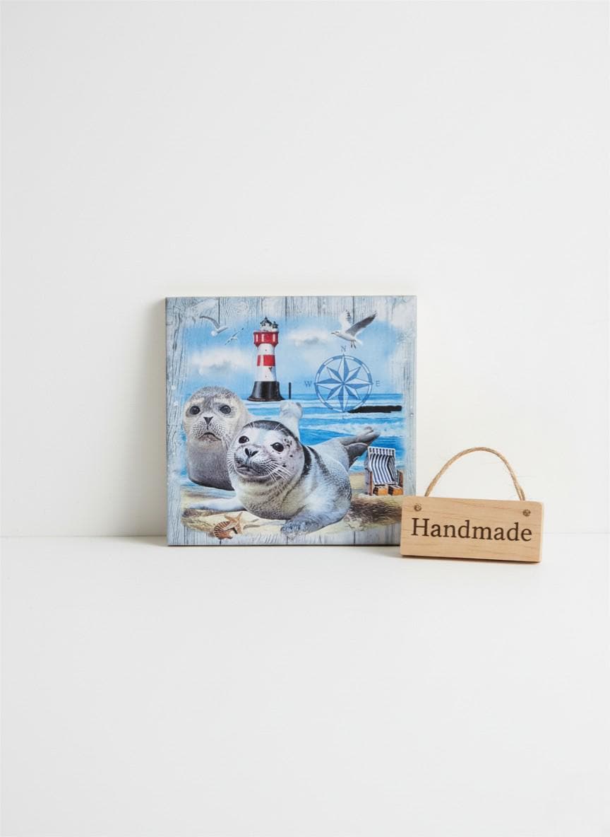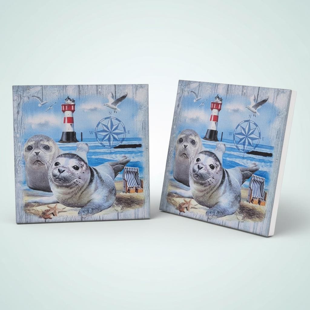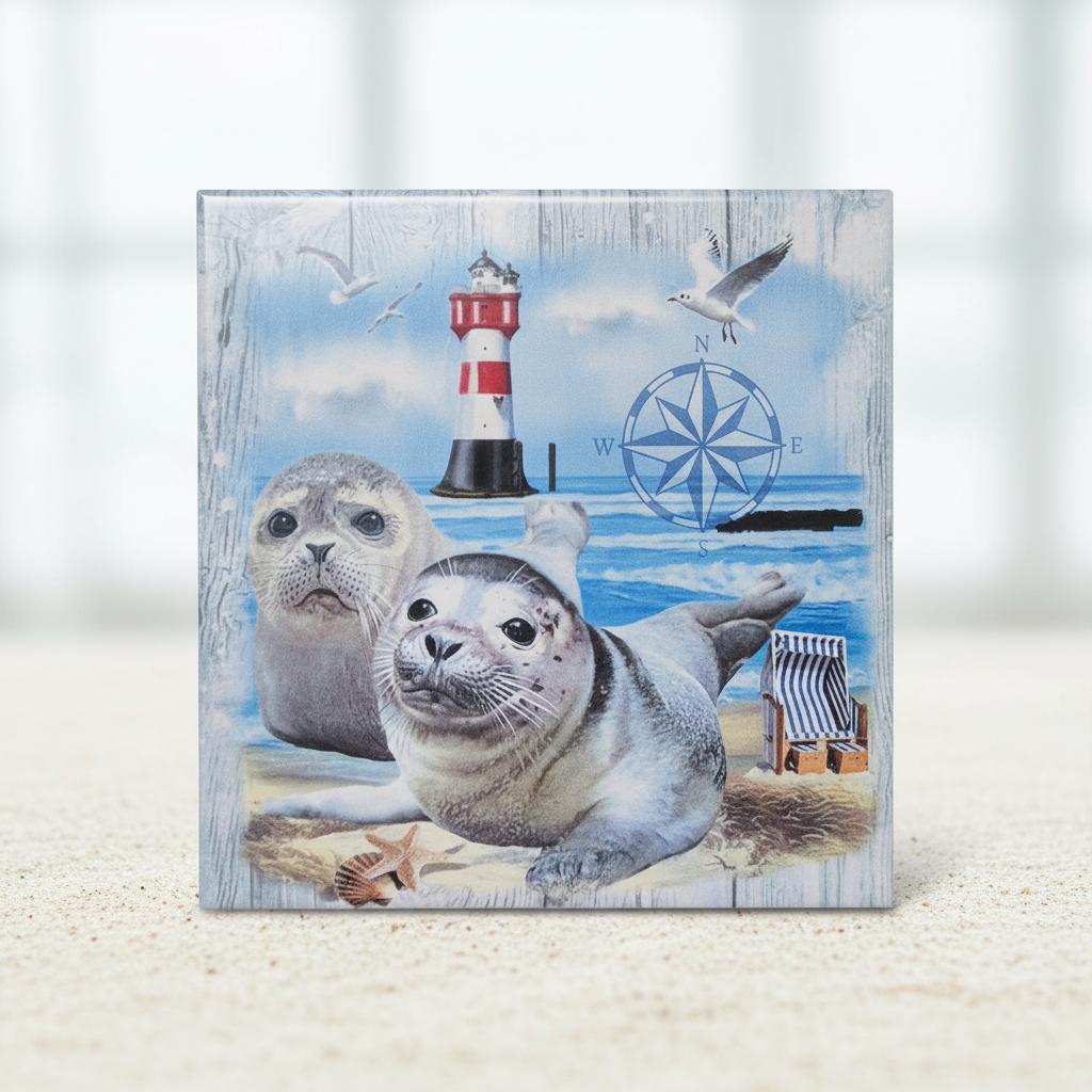 Bring coastal vibes to your home: This maritime-themed tile features two seals on a beach with a lighthouse and seaside scenery – perfect as a nautical accent wall. This ceramic tile with its image is a high-quality decorative tile for the kitchen, hallway, guest bathroom, or home bar, instantly bringing a nautical bathroom decor feel to your space.