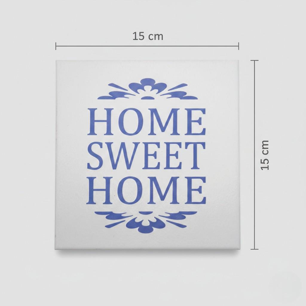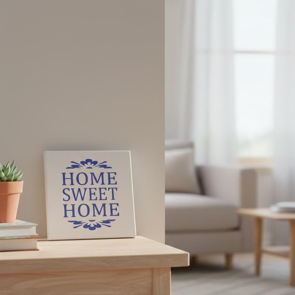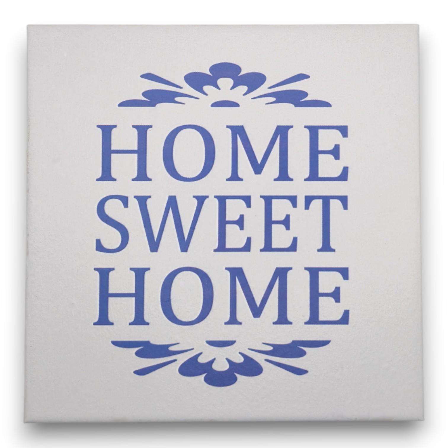 Zeitlose Keramik Motivfliese mit dem Spruch „Home Sweet Home“ in klassischem Design.