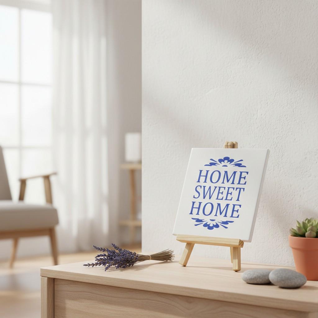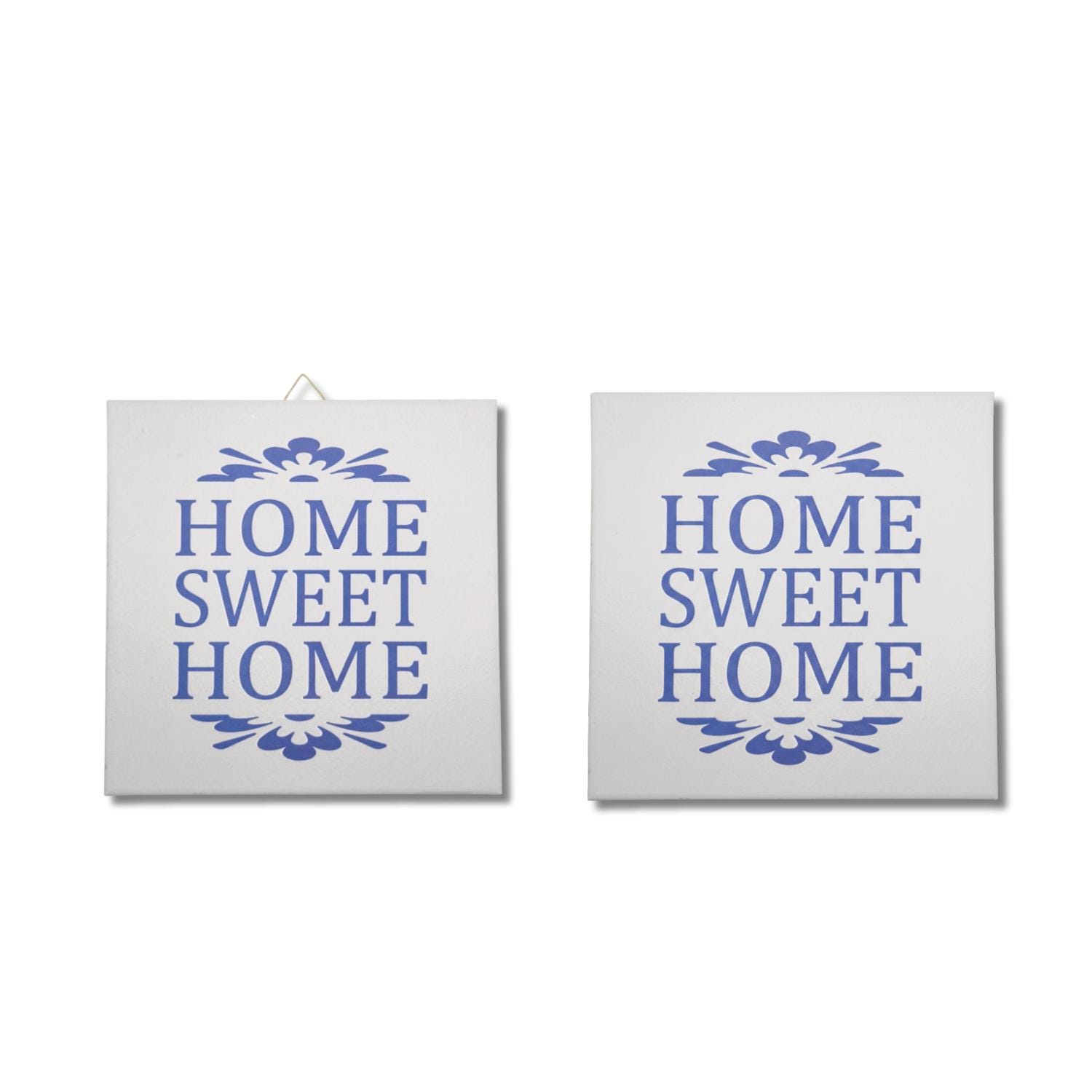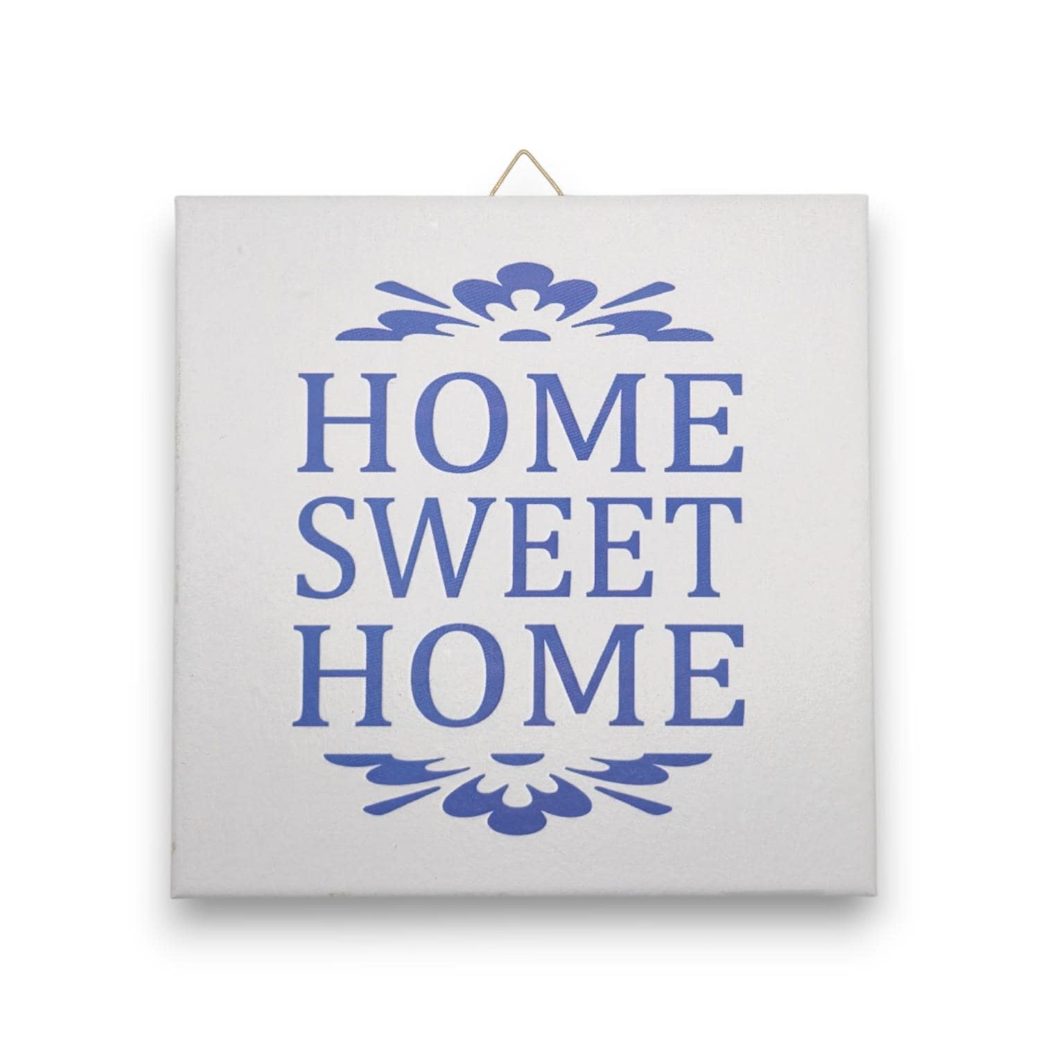 Zeitlose Keramik Motivfliese mit dem Spruch „Home Sweet Home“ in klassischem Design.