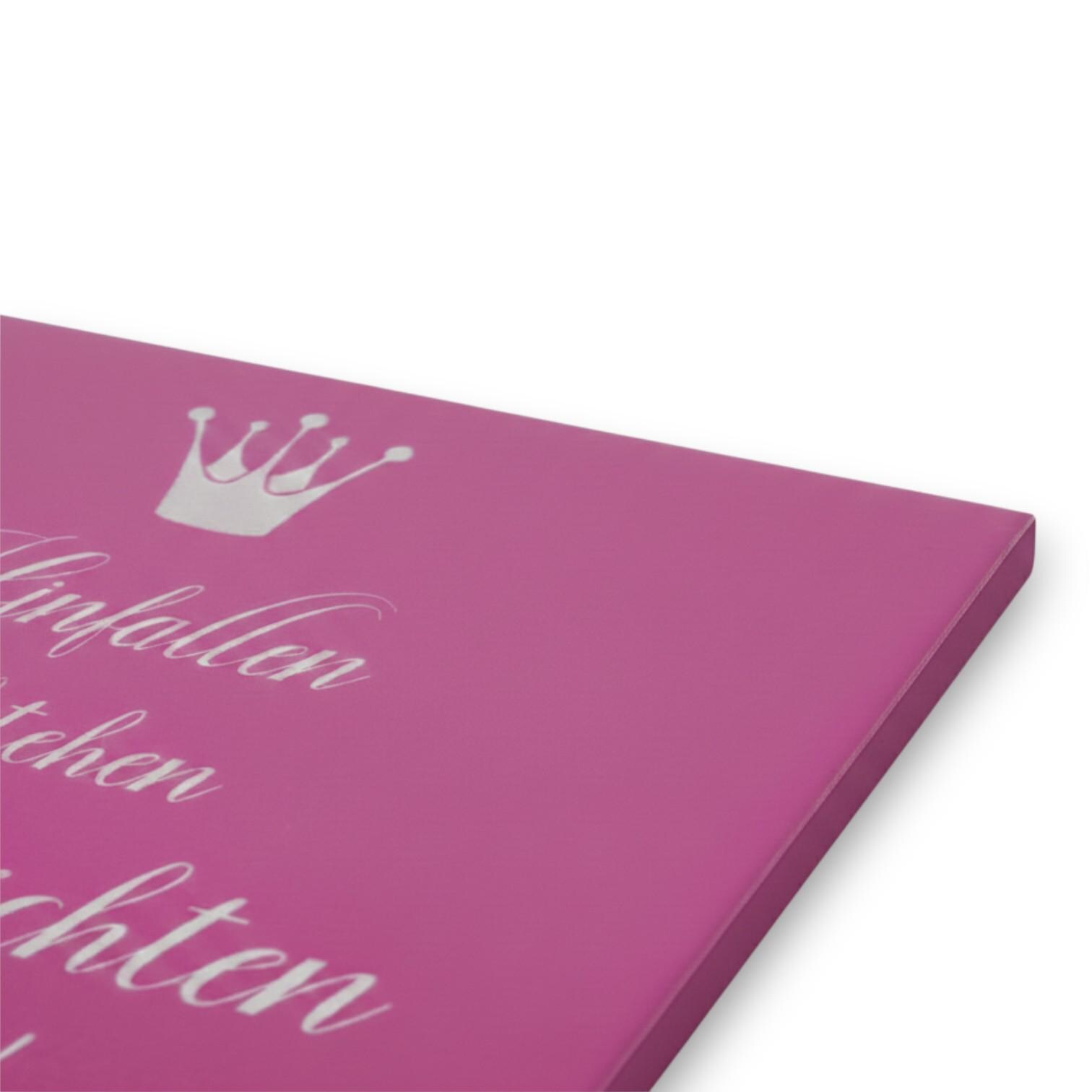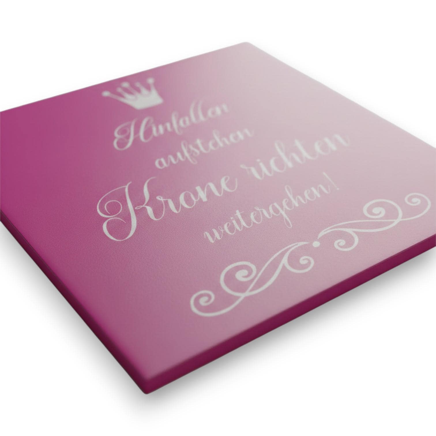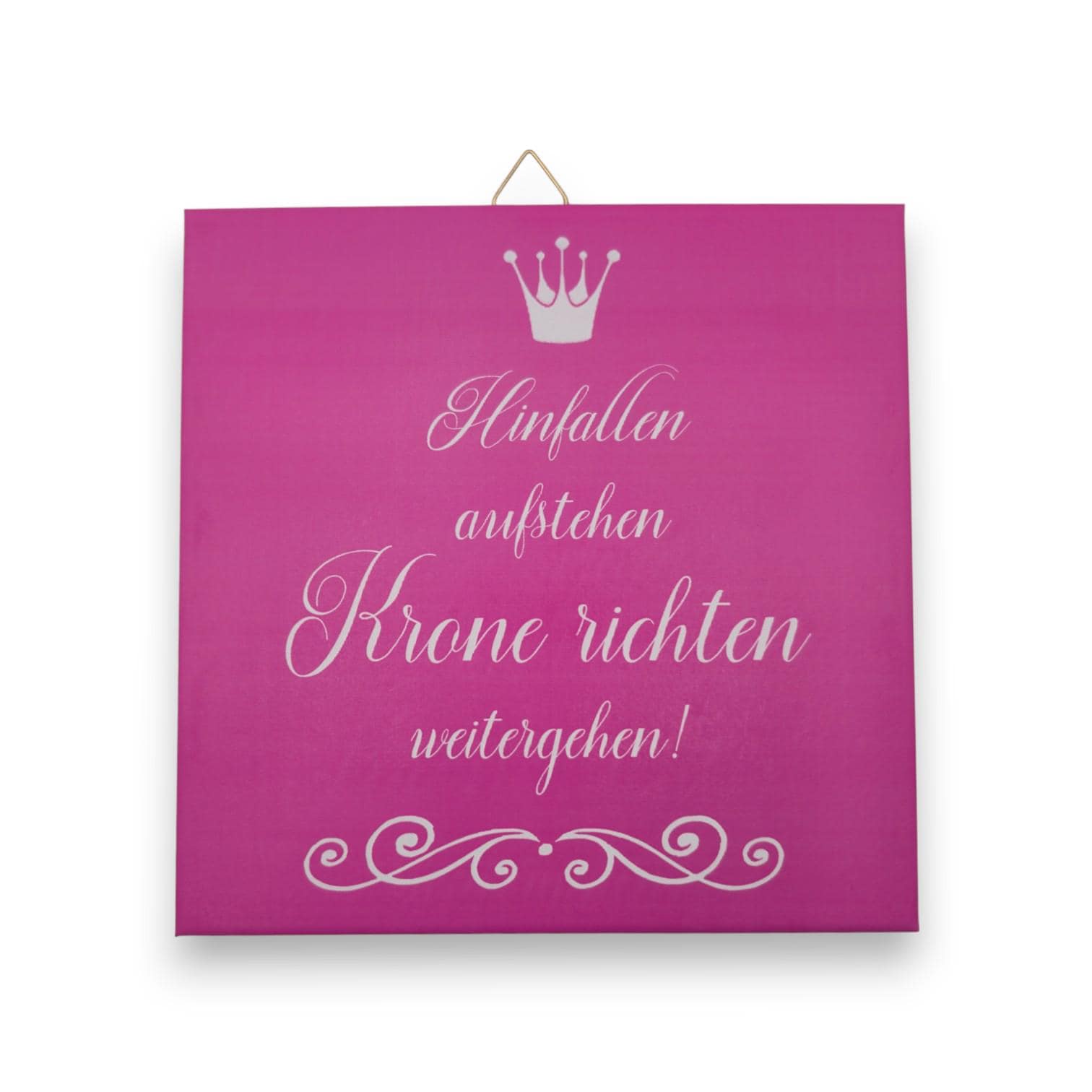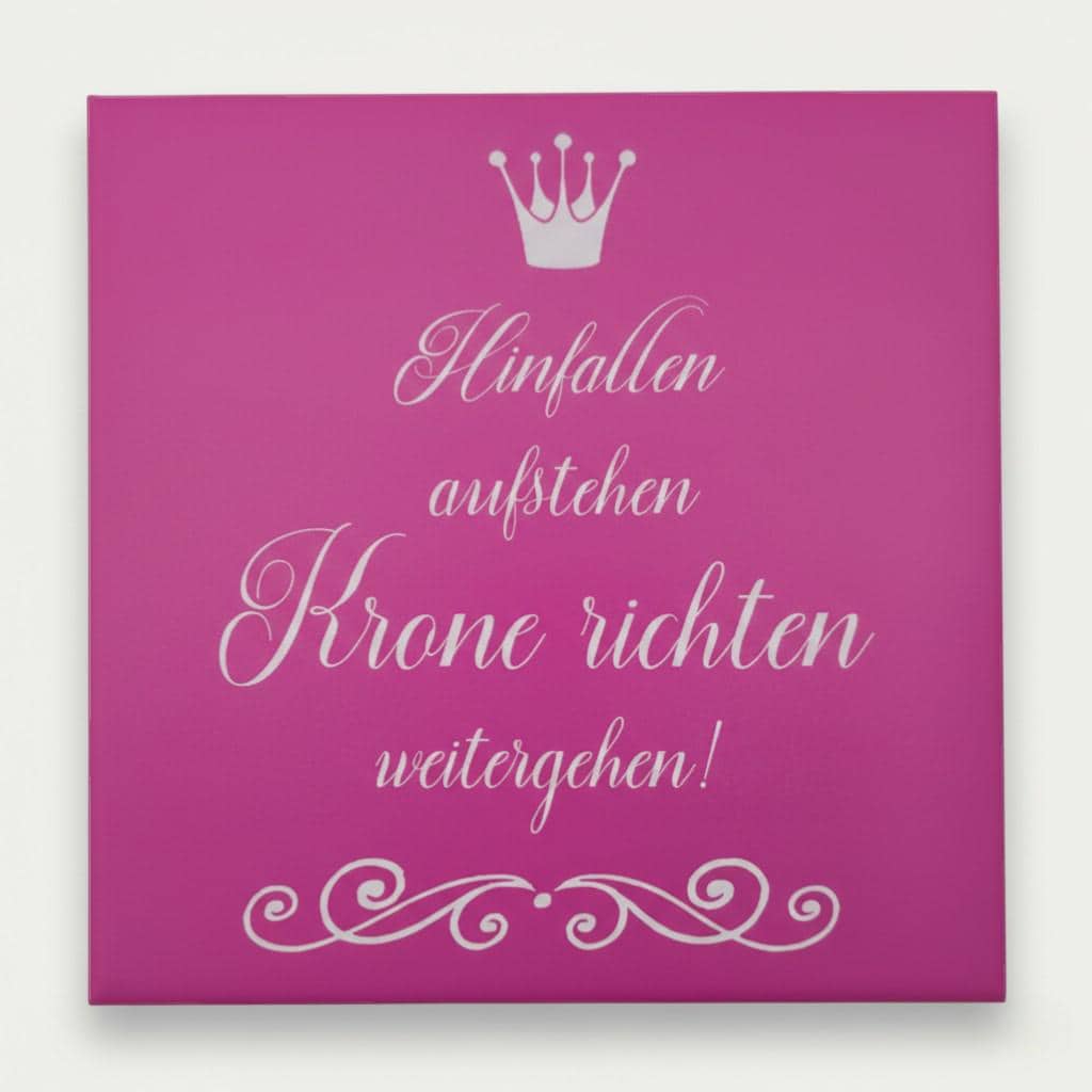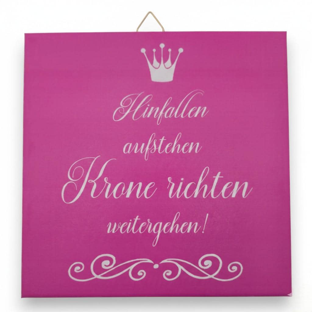 Ausdrucksstarke Motivfliese mit Spruch und Krone in kräftiger Farbgestaltung.