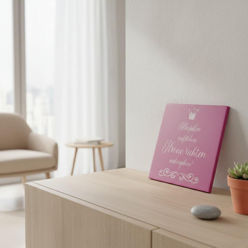 Die Keramikfliese eignet sich als dekorativer Mutmacher für Wohnräume, Büros oder persönliche Rückzugsorte.