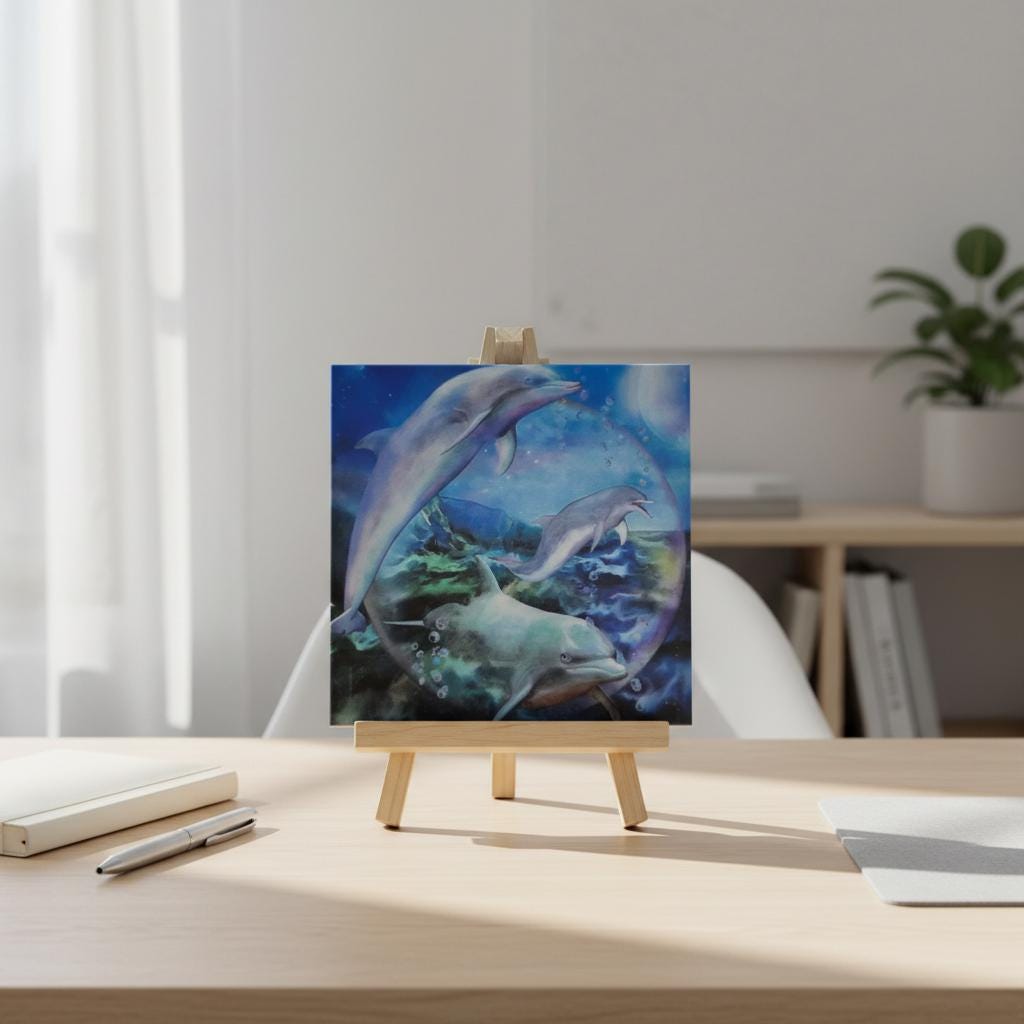 Ruhige Delfin-Motivfliese mit maritimer Unterwasserwelt in Blau- und Türkistönen.
