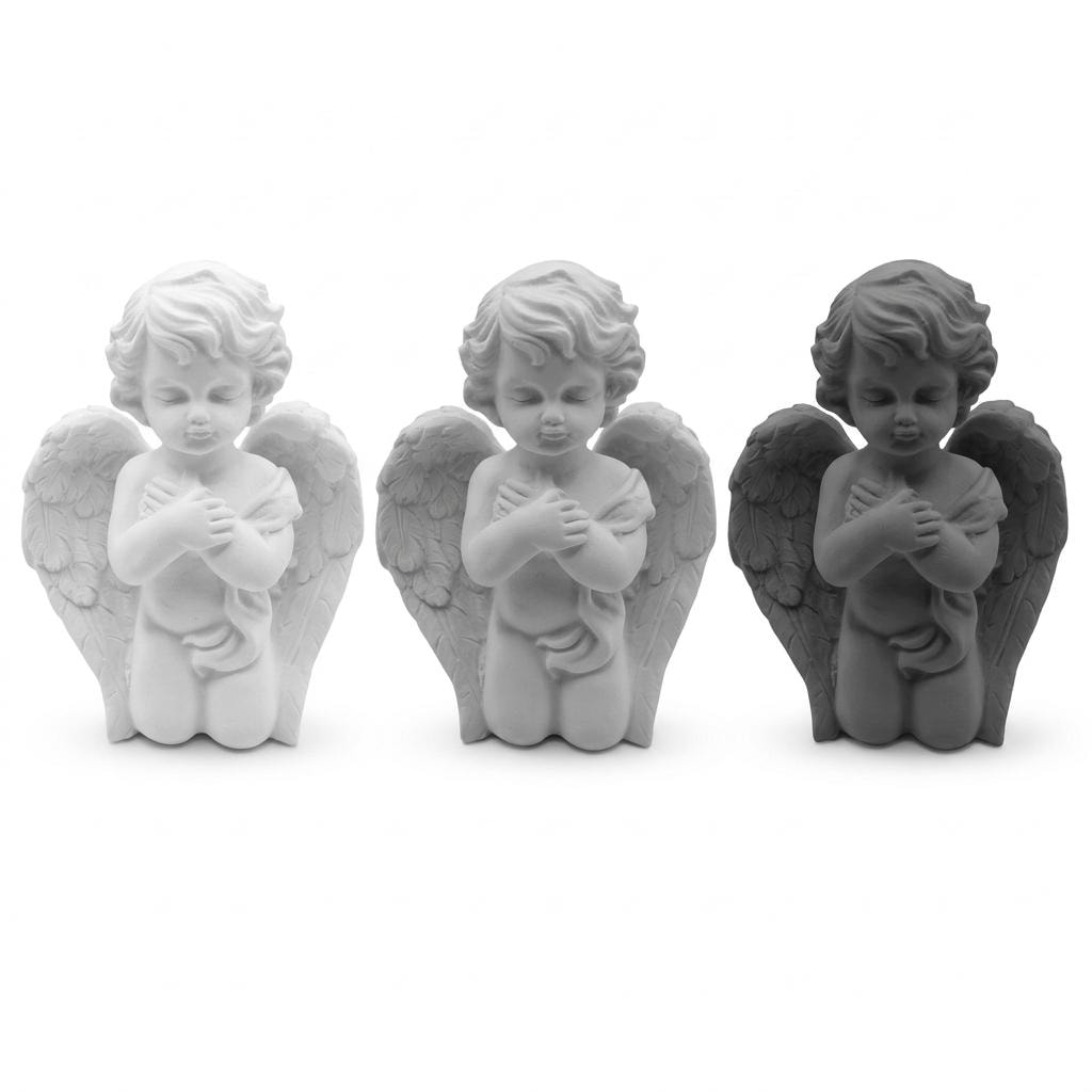 Dieser kleine betende Engel ist einer meiner persönlichen Lieblinge – still, ausdrucksstark und voller Wärme. Die detaillierten Flügel, die gefalteten Hände, der gesenkte Blick: all das überträgt sich wunderschön auf das fertige Betonstück.