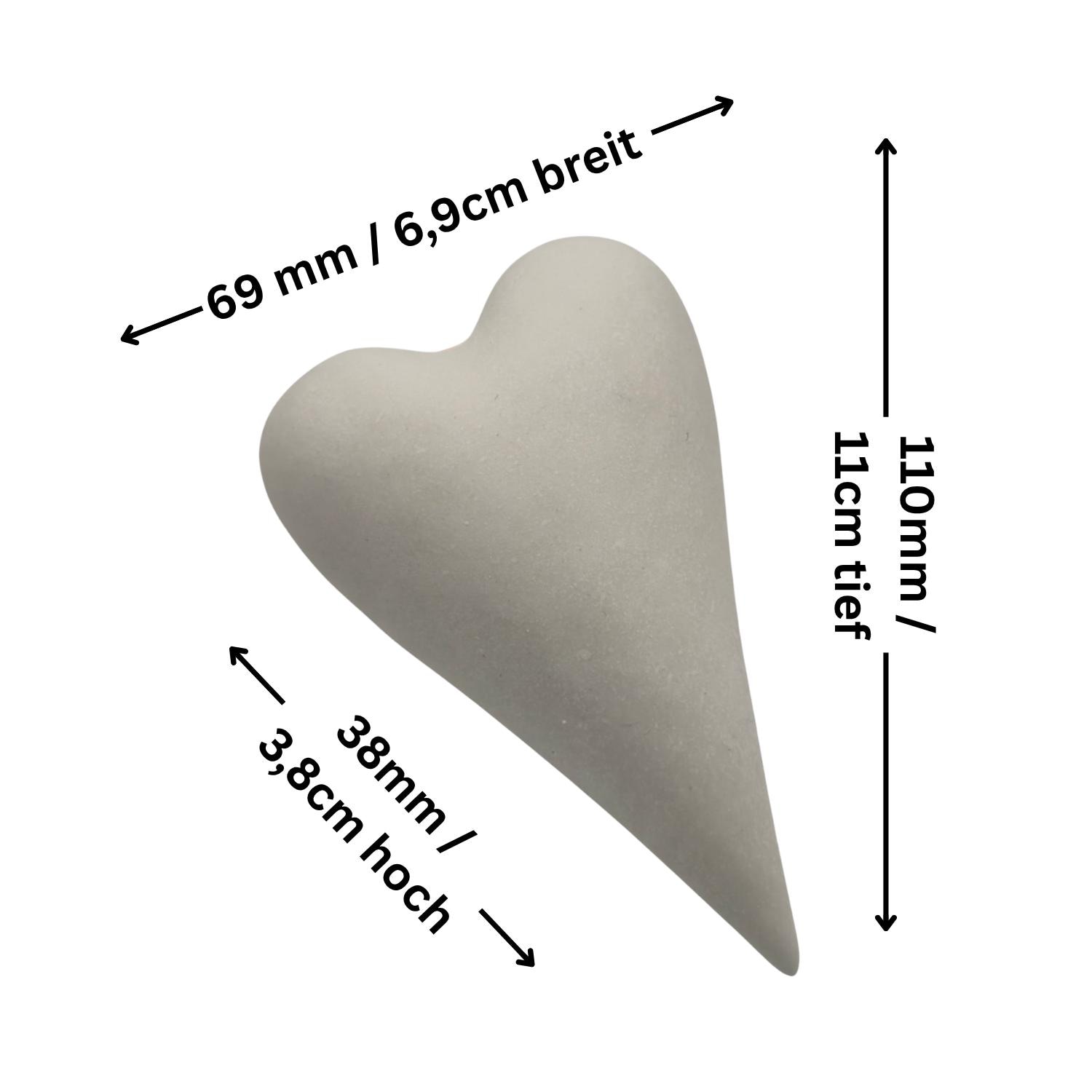 Schlicht, zeitlos, vielseitig – dieses spitz zulaufende Herz überzeugt durch pure Form ohne Schnörkel. Naturbelassen in Beton als moderne Wohndeko, zart bemalt als Geschenk oder als stilvoller Grabschmuck. Die Latexgießform ist handgemacht in meinem Atelier in Oberhaid und liefert Guss für Guss scharfe, saubere Ergebnisse in Beton, Raysin und Keraflott.