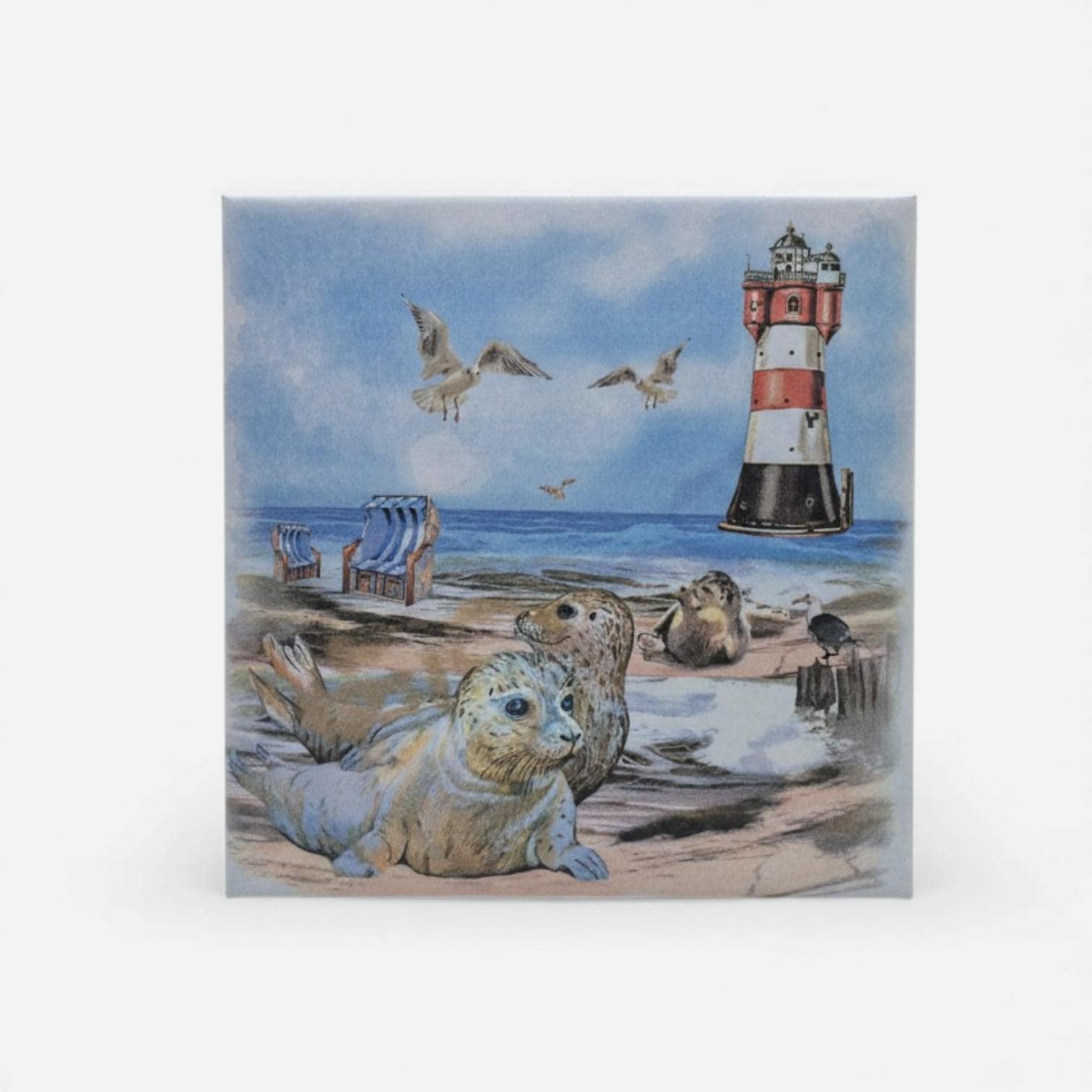 Seals rest gently on the beach – sea breeze, sand, and coastal flair for your home. This maritime picture tile brings a real holiday feeling to your wall, bathroom, or sideboard.