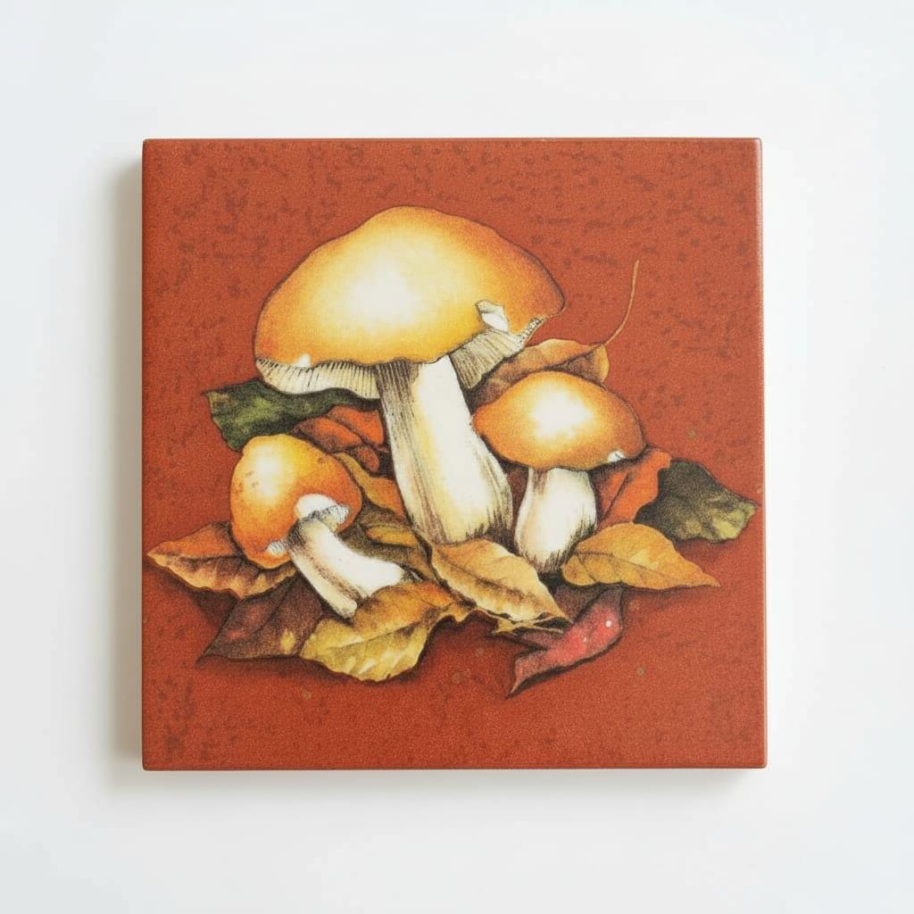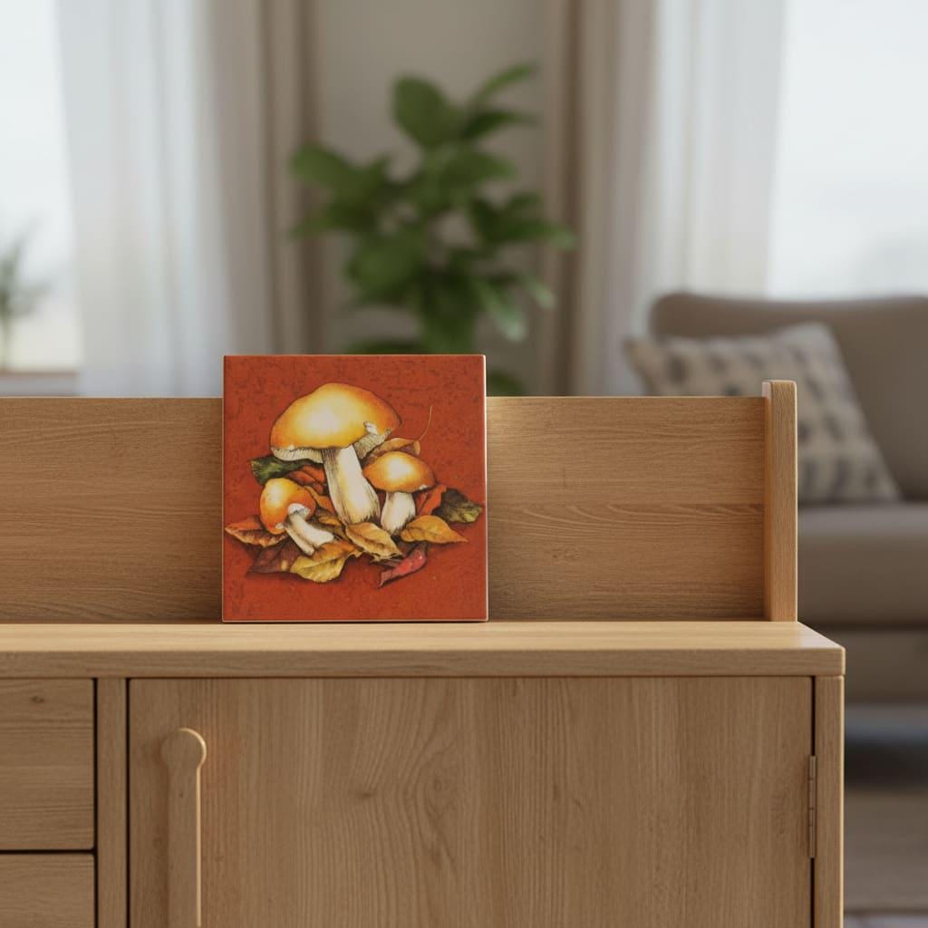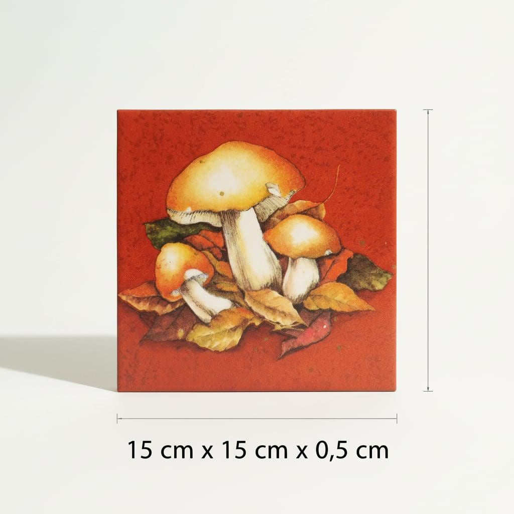 Diese Bildfliese mit Pilzmotiv und Herbstlaub ist eine ruhige, warme Wanddekoration für alle, die Naturdeko lieben. Das Waldmotiv wirkt besonders gemütlich durch seine erdigen Herbsttöne und passt wunderbar in Küche, Bad, Flur oder ins Wohnzimmer. Die Keramikfliese im Format 15 × 15 cm eignet sich als dekorativer Akzent auf einer Bilderleiste, im Regal oder als kleines Highlight an der Wand. Ob als Motivfliese für deine herbstliche Einrichtung oder als Geschenkidee für Pilzsammler und Naturfreunde – die Fliese mit Bild bringt den Charme des Waldes stilvoll in dein Zuhause.