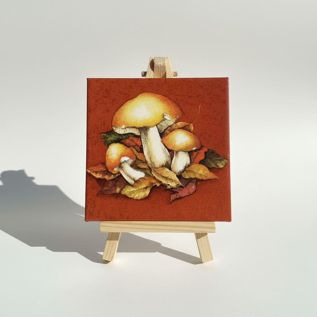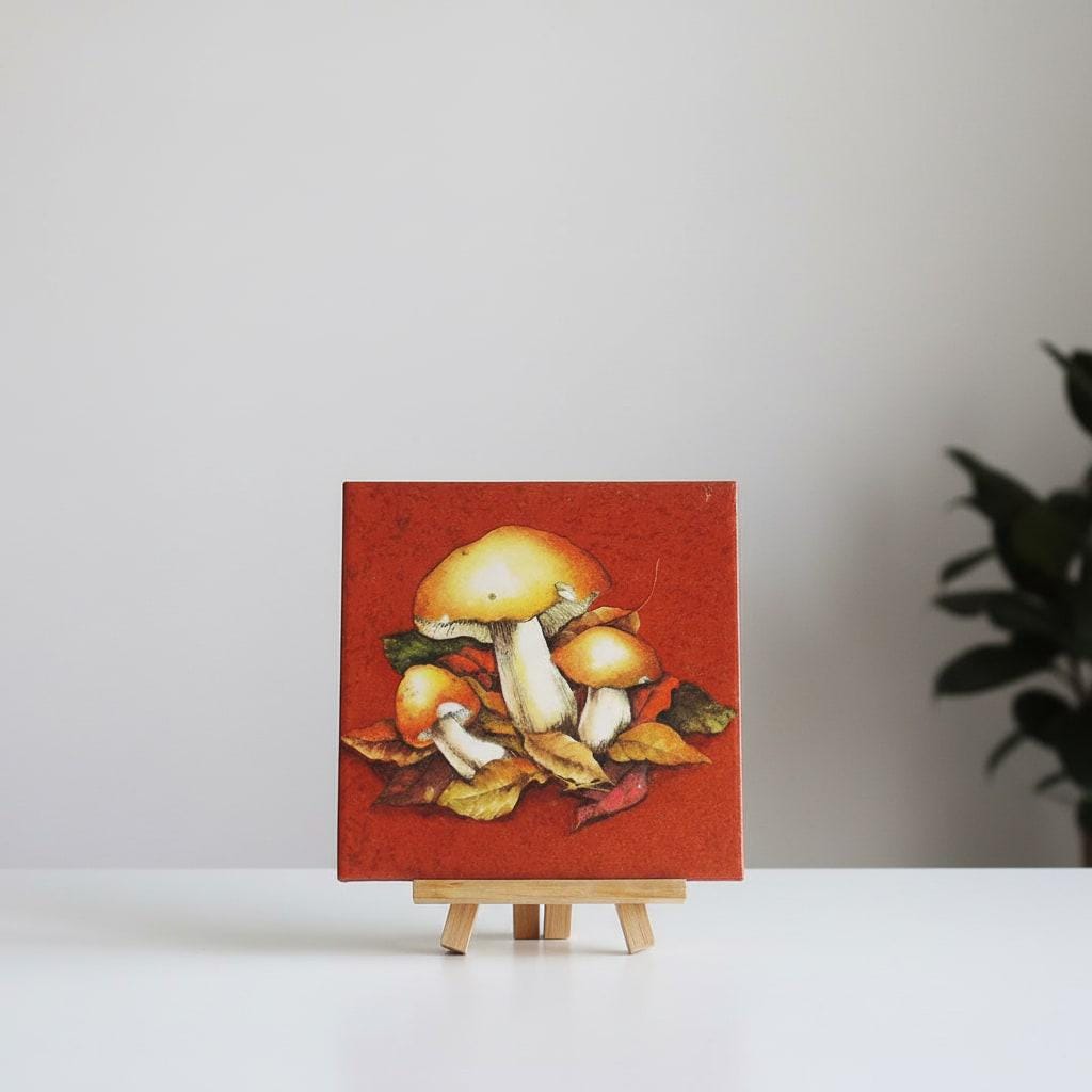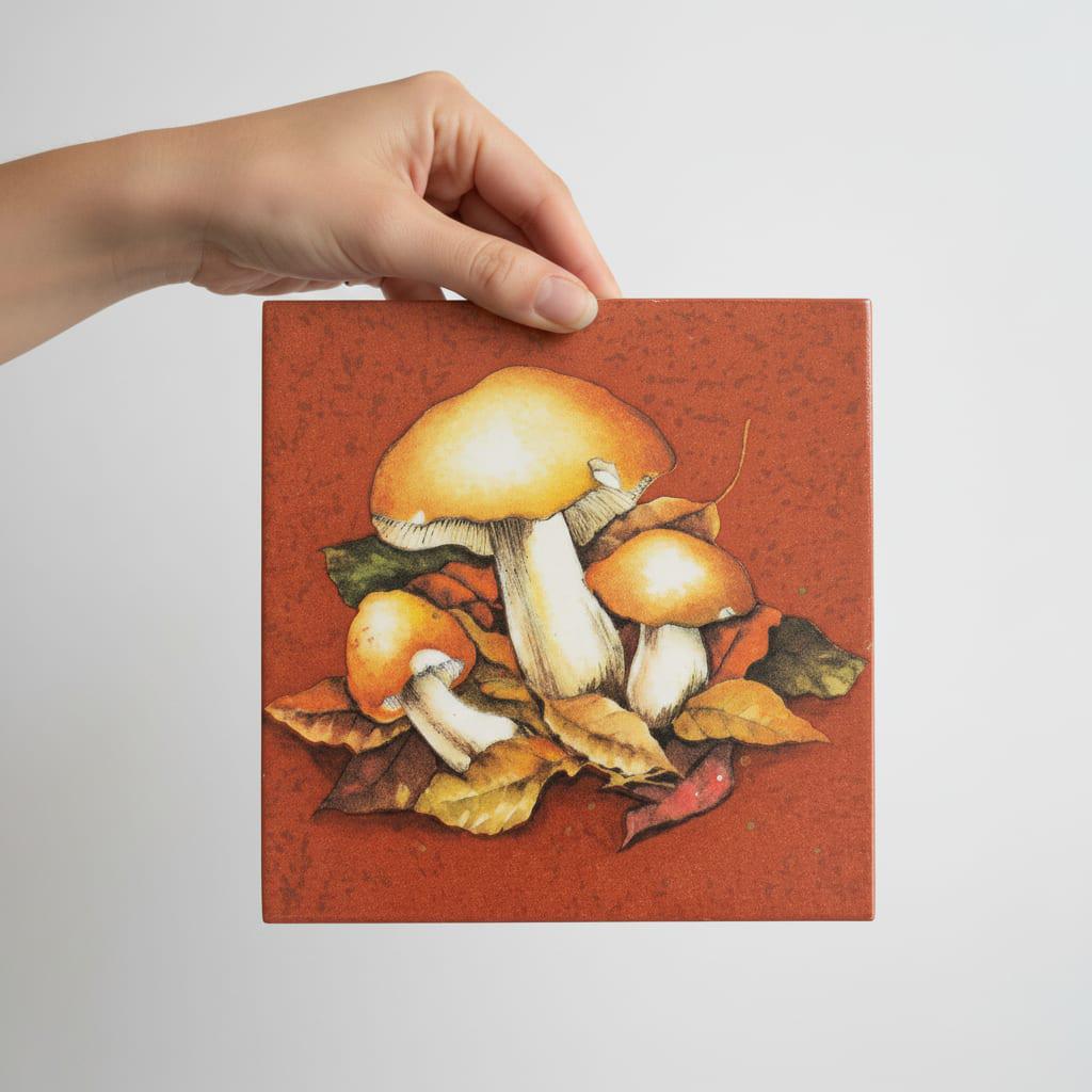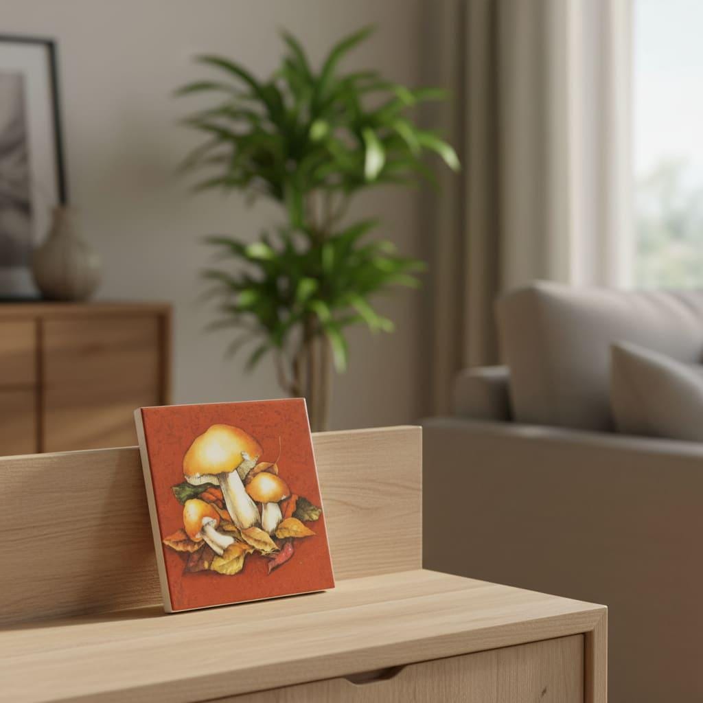 Diese Bildfliese mit Pilzmotiv und Herbstlaub ist eine ruhige, warme Wanddekoration für alle, die Naturdeko lieben. Das Waldmotiv wirkt besonders gemütlich durch seine erdigen Herbsttöne und passt wunderbar in Küche, Bad, Flur oder ins Wohnzimmer. Die Keramikfliese im Format 15 × 15 cm eignet sich als dekorativer Akzent auf einer Bilderleiste, im Regal oder als kleines Highlight an der Wand. Ob als Motivfliese für deine herbstliche Einrichtung oder als Geschenkidee für Pilzsammler und Naturfreunde – die Fliese mit Bild bringt den Charme des Waldes stilvoll in dein Zuhause.
