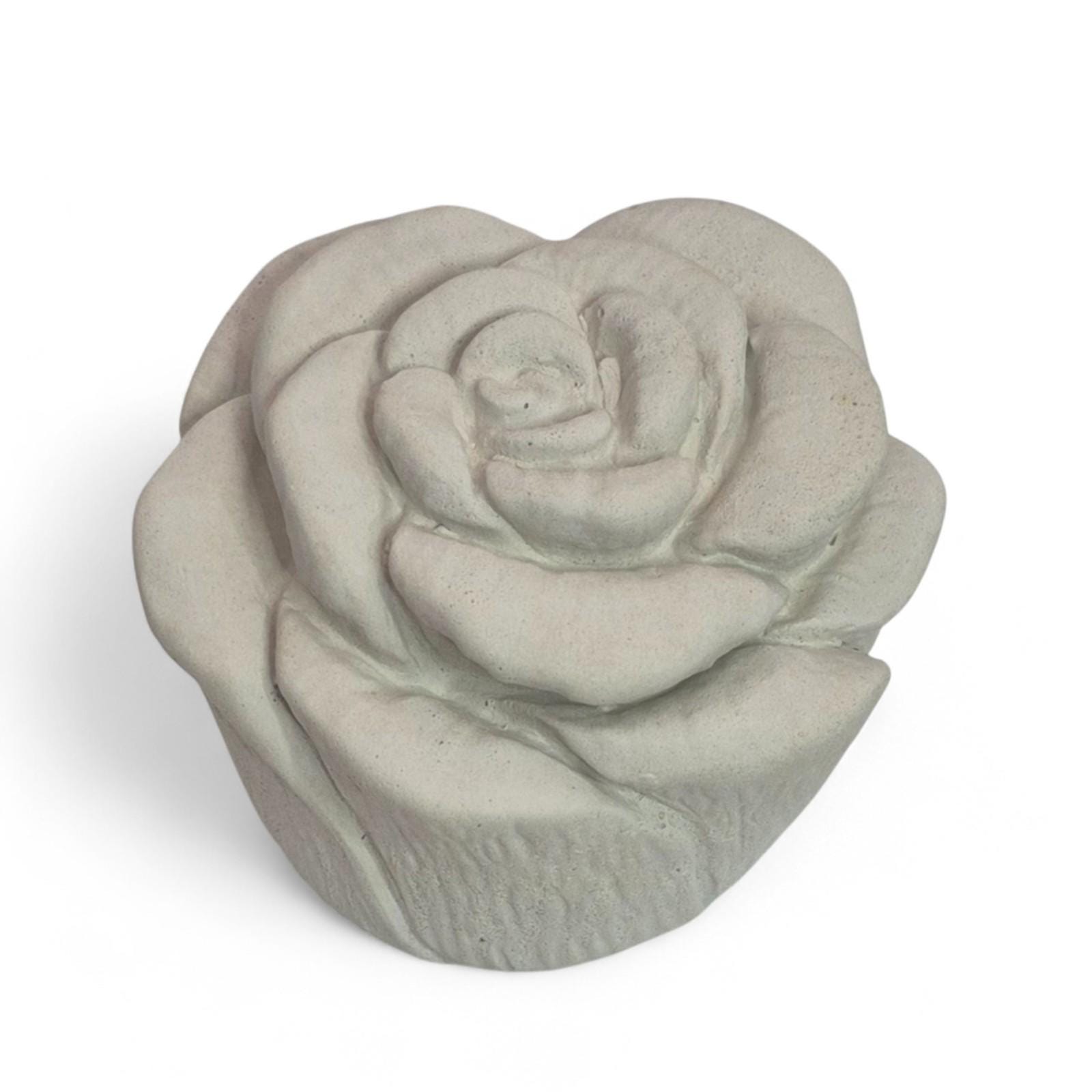 You can cast the Rose concrete mold with Keraflott, Raysin, Stewalin, white cement, or concrete. It is not suitable for epoxy resins, soap, or wax.